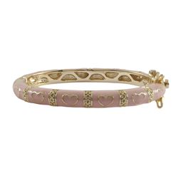 Pink Enamel, Pink Hearts-Gold Plated Brass Bangle