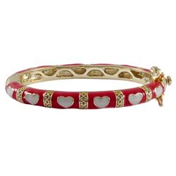 Red Enamel, White Hearts-Gold Plated Brass Bangle