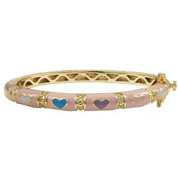 Pink Enamel, Multi Color Hearts-Gold Plated Brass Bangle