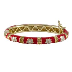 Red Enamel, White Flower-Gold Plated Brass Bangle
