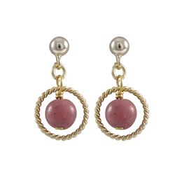 Rhodonite(Pink) 6Mm Semi Precious Ball In 10Mm Braided Ring, On Gold Filled Ball Post Earrings, 0.75