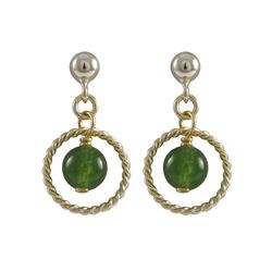 Green Jade 6Mm Semi Precious Ball In 10Mm Braided Ring, On Gold Filled Ball Post Earrings, 0.75&Quot;