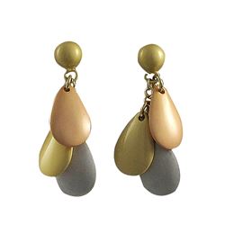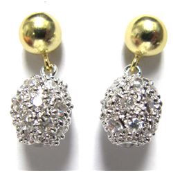 Gold Colored Sterling Silver Post Earrings With Matte Lazer Balls & Champ. CZ
