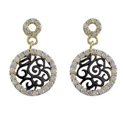 Gold And Black Over Sterling Silver Filigree CZ Post Earrings -0.78