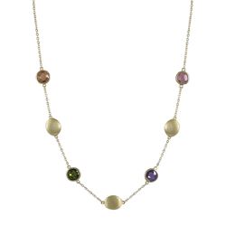 Amy 10Mm Round Semi Precious Stone In Gold Plated Brass Filigree Pendant, 1.08", On Gold Plated Sterling Silver Chain, 18"