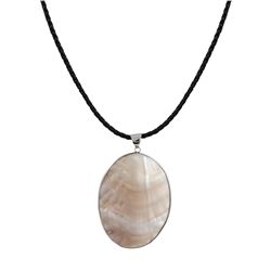 Grey Clay Flat 35Mm Circle Pendant Covered With Grey Crystals On Black Steel Chain 16" 3"
