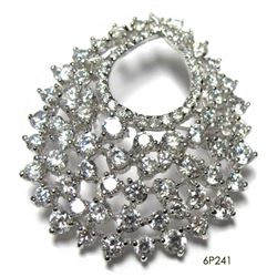 Rhodium Plated Sterling Silver, 30Mm Round Pendant, Line Design, White CZ, 1.46