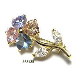 Gold Plated Sterling Silver 37Mm Flower With White CZ Brooch/Pin