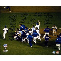1986 New York Mets Team Signed World Series Winning On Field Celebration 16x20 Photo (28 Signatures)