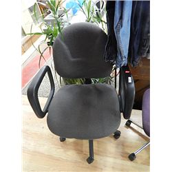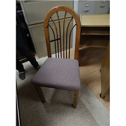 OAK SPINDLE ARROW BACK UPHOLSTERED DINING CHAIR (4 X BID)