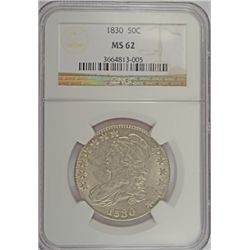 1830 BUST HALF DOLLAR, NGC MS-62, BLAST WHITE, SURE LOOKS MS-63