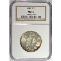 1945 WALKING LIBERTY HALF DOLLAR NGC MS66