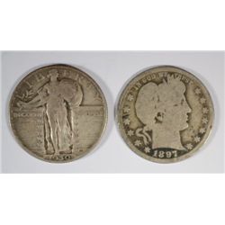 1930 STANDING QUARTER VF+, 1897-O QUARTER GOOD154 - 1930 STANDING QUARTER VF+, 1897-O QUARTER GOOD