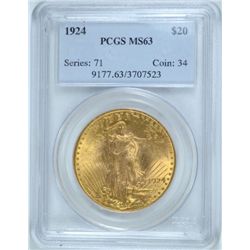 1924 $20.00 St. GAUDENS GOLD, PCGS MS-63159 - 1924 $20.00 St. GAUDENS GOLD, PCGS MS-63