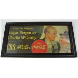 Vintage Coca Cola Ad Ed Bergen with Charlie McCarthy CBS Sunday Evenings. Ad is framed in a 18"x10" frame with a small chip to the frame o...