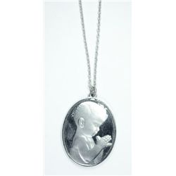 Oval medallion style cameo pendant with beautiful relief pattern of baby designed by Abram Belske 24" Chain 1 19/16" x 1 1/8" Pendant...