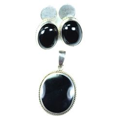 Sterling Silver Black Onyx Pendant and Earrings Set196 - Sterling Silver Black Onyx Pendant and Earrings Set