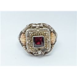 Vintage Sterling Bi Color Locket Ring with Red Stone198 - Vintage Sterling Bi Color Locket Ring with Red Stone