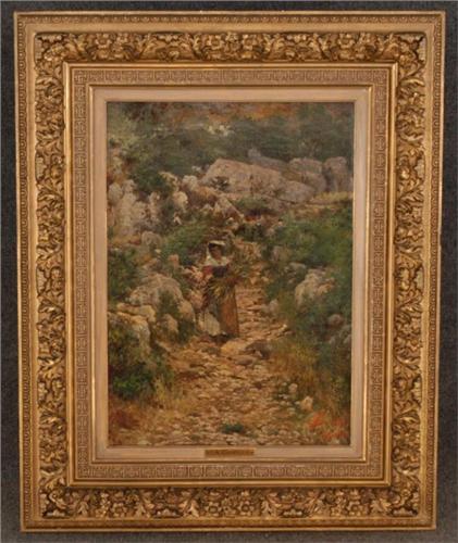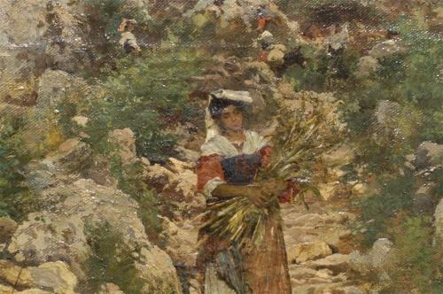 AUGUSTO CORELLI 22"x15 1/2" oil on canvas Returning from the Hills <BR>condition: excellent