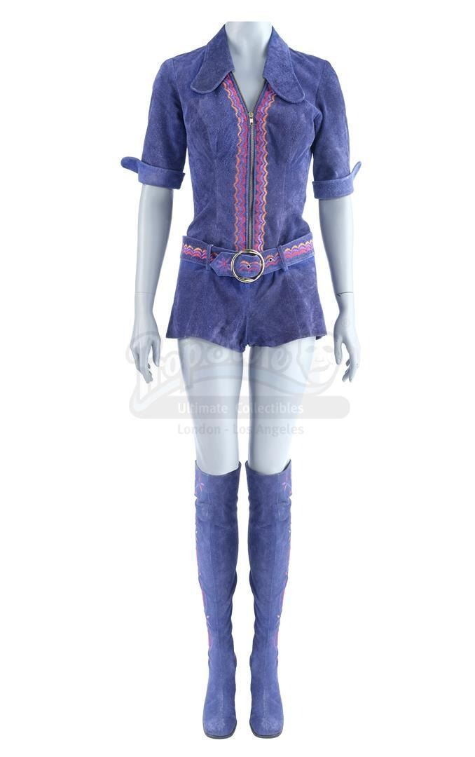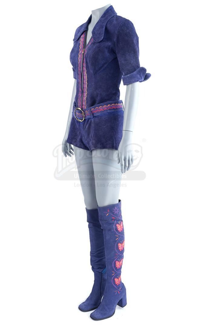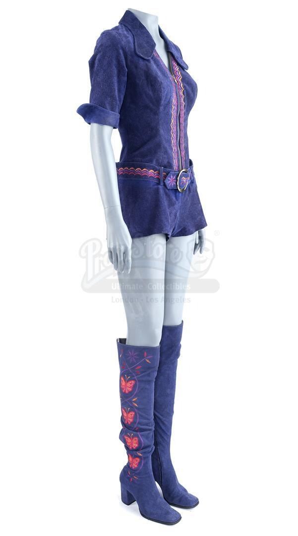 Felicity Shagwell's (Heather Graham) suede romper and boots from Jay Roach's spy-comedy sequel Austin Powers: The Spy Who Shagged Me. Felicity wore her distinctive suede costume when she met Austin Powers (Mike Myers) in 1960s London.