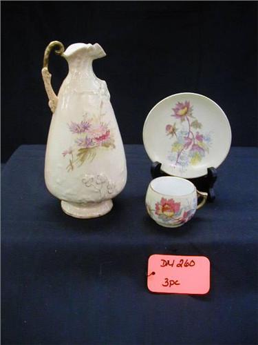 AUSTRAIN BISQUE INCLUDES (1) 8in URN FLORAL VASE (W/OLD REPAIR), (1) DEMI & SAUCER FLORAL EXCELLENT, 3 PC