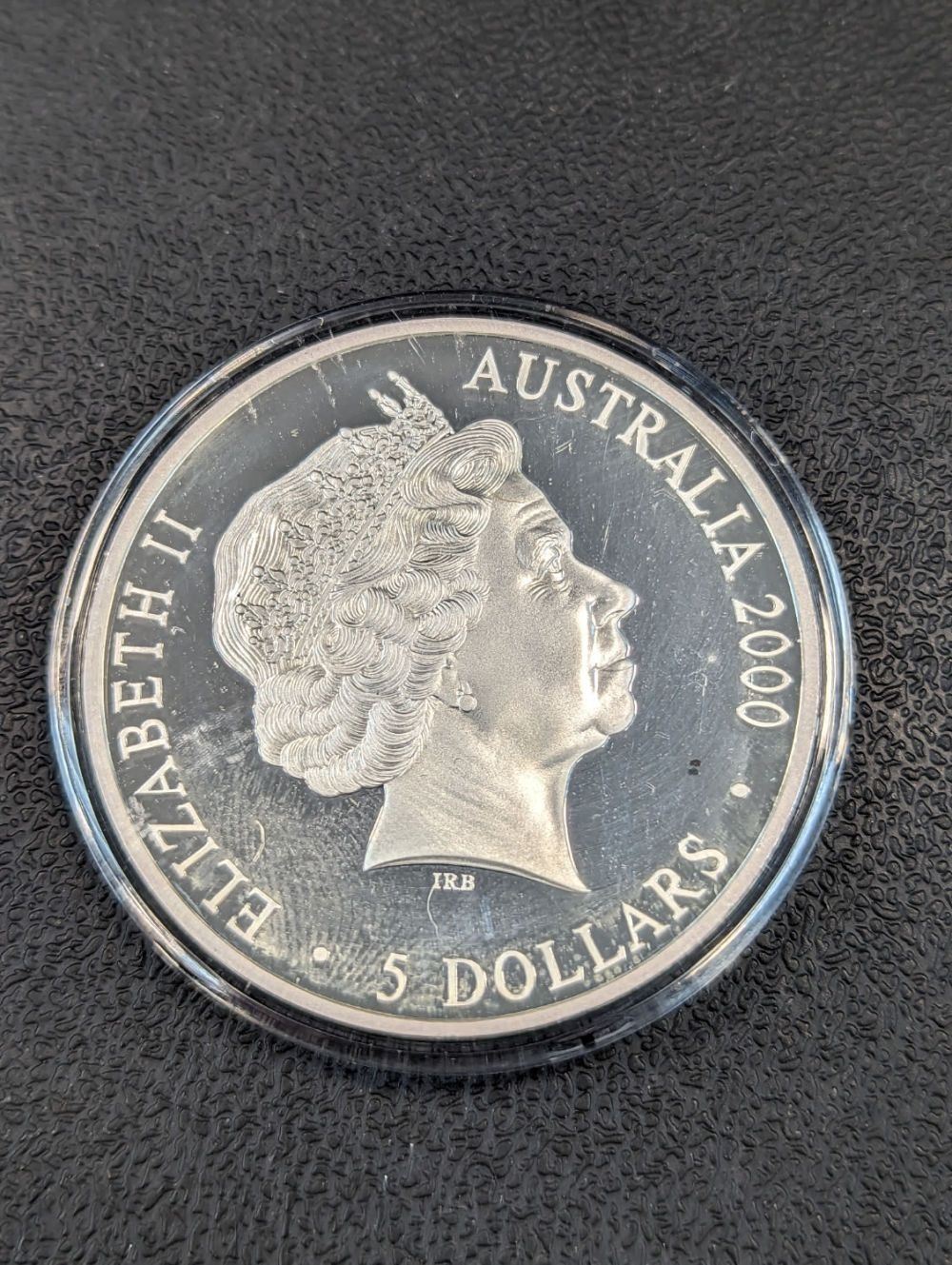 AN AUSTRALIA $5.00 2000 SYDNEY OLYMPICS 1 Ounce .999 FINE SILVER PROOF Crown. In original Capsule and nice!