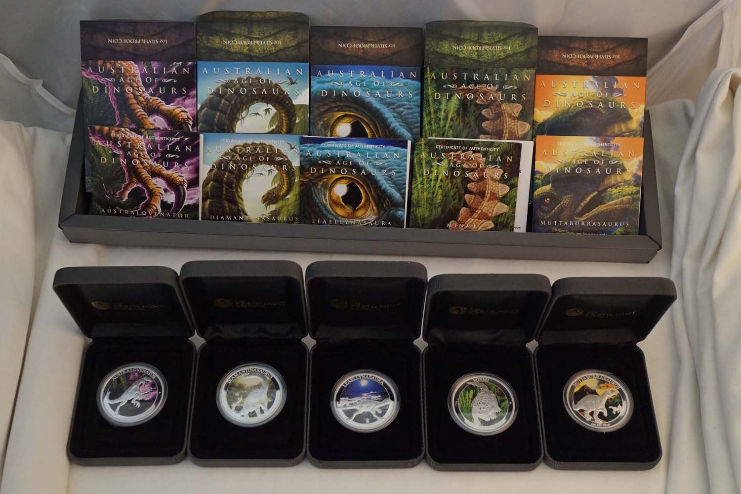 AUSTRALIA A 5 Coin Set of $1.00 Proof Age of Dinosaurs .9999 5.0 oz.w/COA and Box