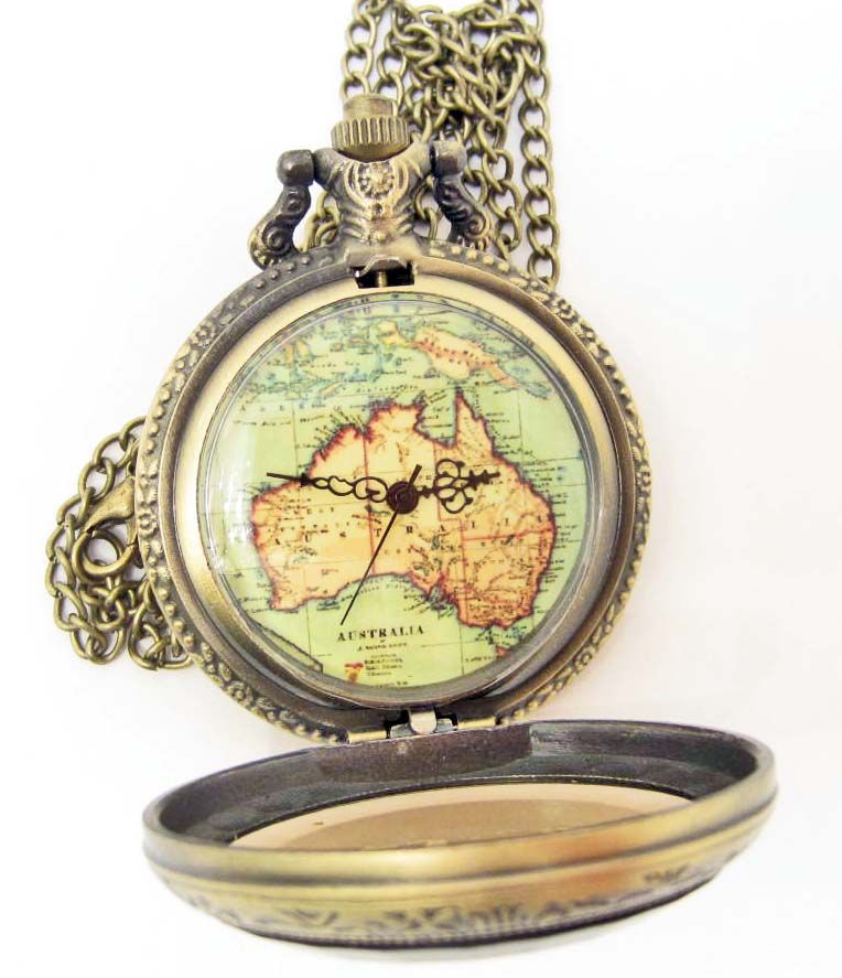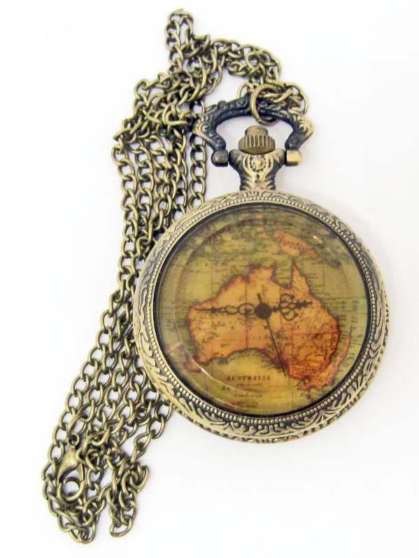 AUSTRALIA MAP POCKET WATCH WITH CHAIN