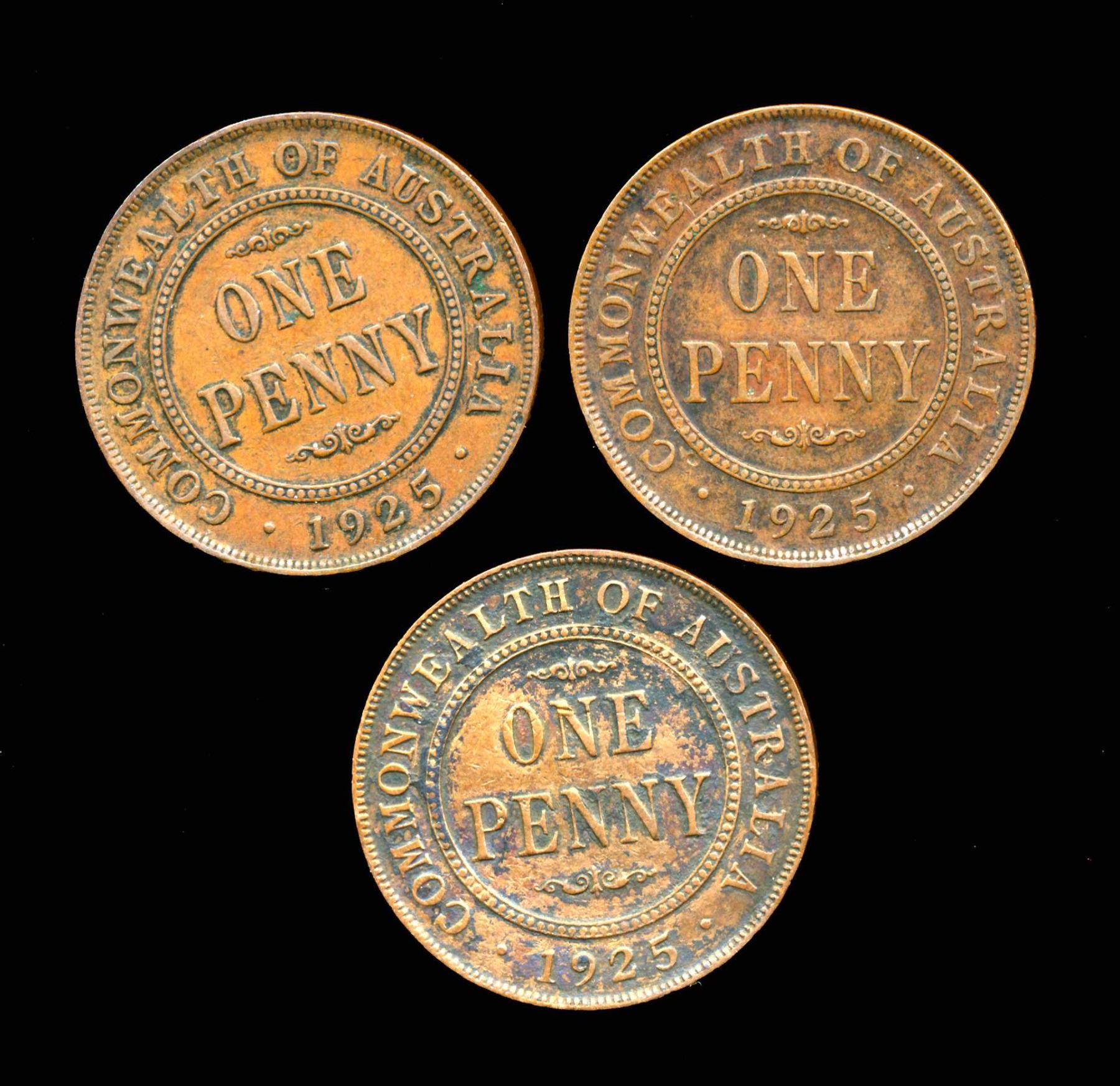 AUSTRALIA Penny 1925. A Lot of 3 in Fine+ Condition. RR