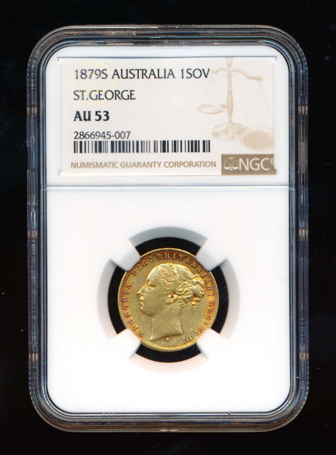 AUSTRALIA Sovereign 1879 S Victoria KM# 7 AU-22 8.1 gm. NGC AU-53