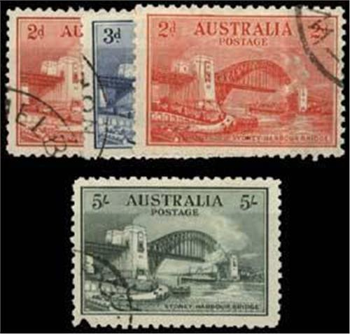 1932 Sydney Harbour Bridge 2d (both) to 5s of (SG 141-44) a few short perfs, cto used, cat £180