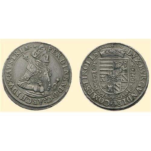 Thaler, undated but with younger head (27.97 g), Hall. Half-length bust right / Arms with middle-great towers of Castilia. Dav.- (comp. 8097/8094).