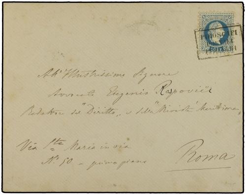 1881 Envelope to Rome, provenance unknown but from the Levant, franked Austrian 10kr. tied by boxed Piroscafi/Postali/ Italiani applied in transit at Ancona.