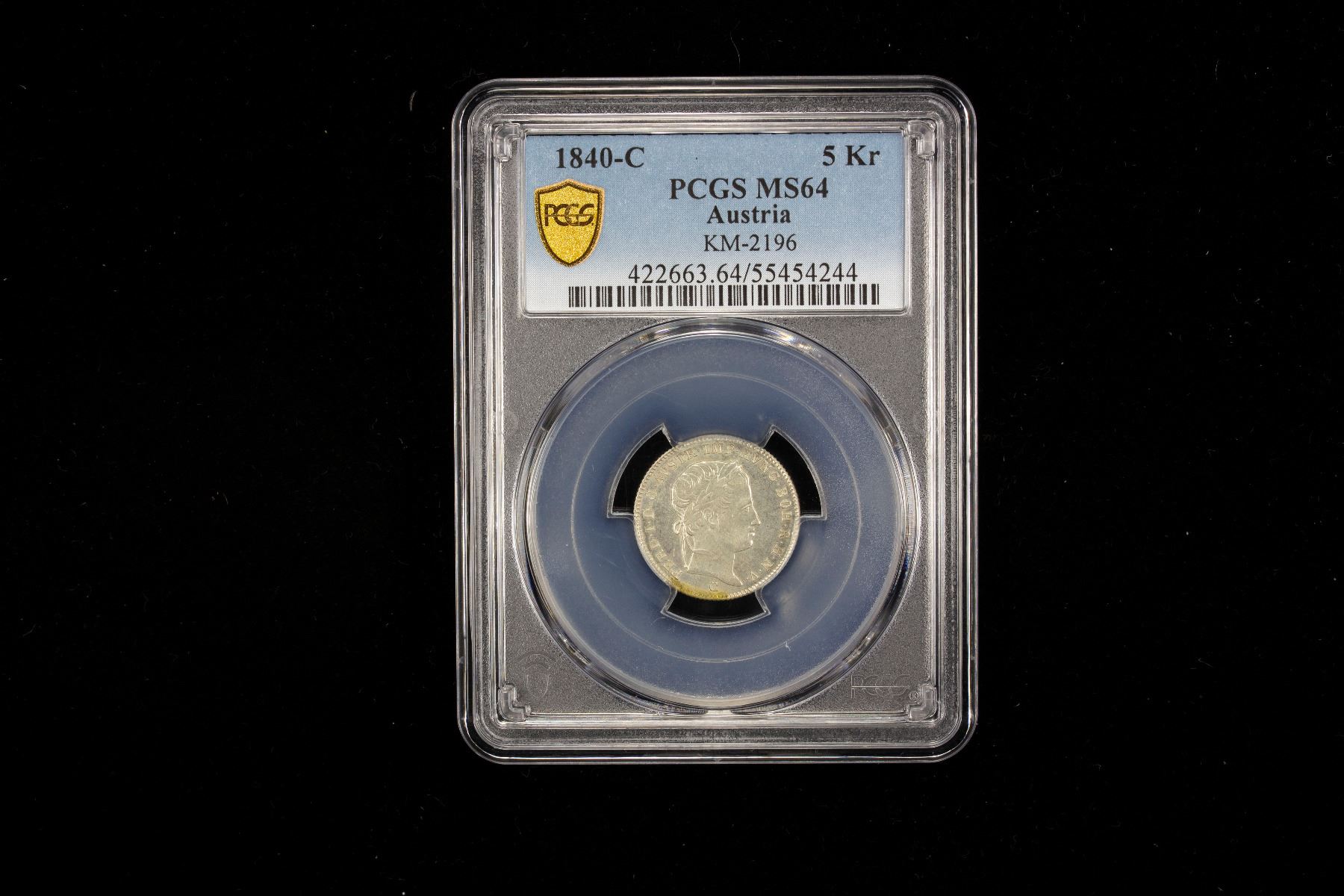 AUSTRIA: Ferdinand I, 1835-1848, AR 5 kreuzer, Prague, 1840-C, PCGS MS64