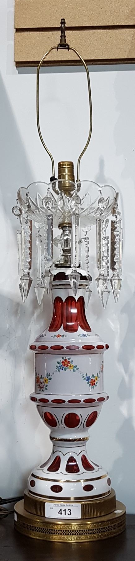 APPROX 36" IN HEIGHT, NEEDS ONE CRYSTAL DROP