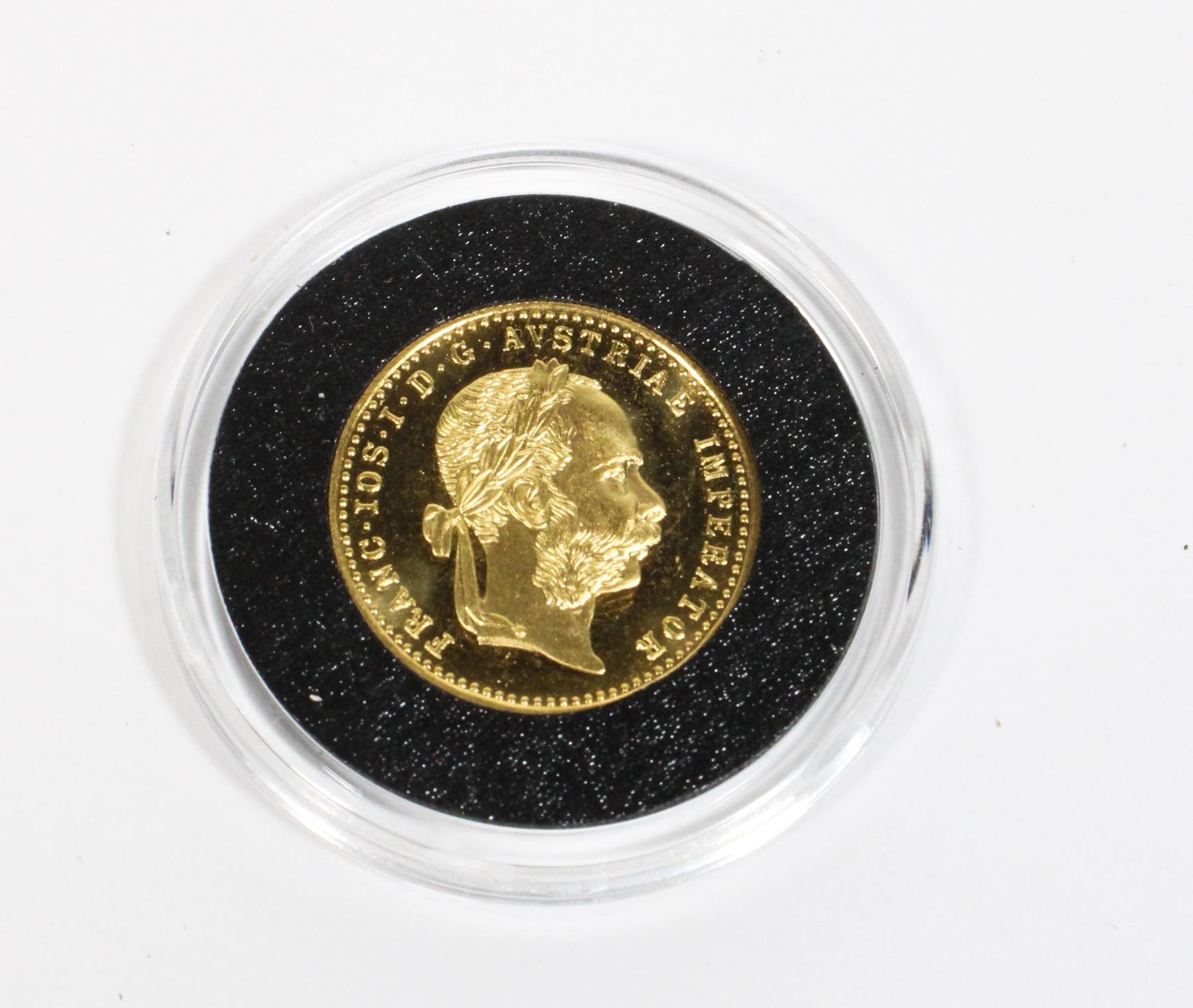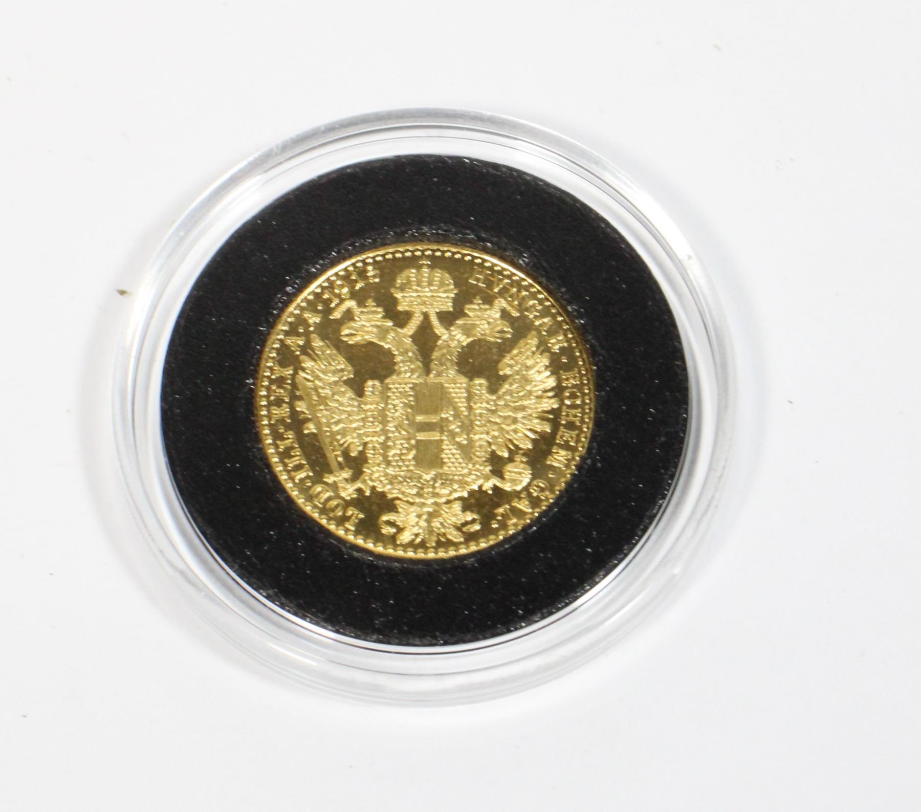 THIS IS A RESTRIKE OF THE ORIGINAL DUCAT WHICH WAS CIRCULATED THROUGHT THE AUTRIA-HUNGARIAN EMPIRE FROM THE 17TH CENTURY UNTIL THE START OF THE FIRST WORLD WAR. (NOT TAX EXEMPT)