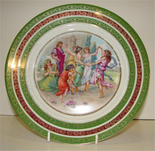 AUSTRIAN VIENNA STYLE PLATE. Depicts a Dionysian festival scene. Shows minor scratching to surface. 9.5” Dia.
