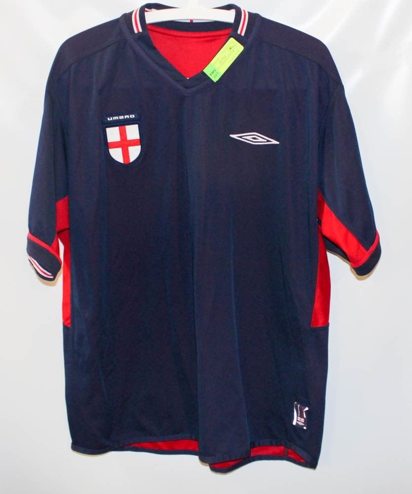 VINTAGE "OFFICIAL PRODUCT" UMBRO SOCCER JERSEY. KICK OFF, 26:03:02, FULL TIME. MARCH 2004. AUTHENTIC HOLOGRAM INSIDE JERSEY. FITS MENS LARGE.