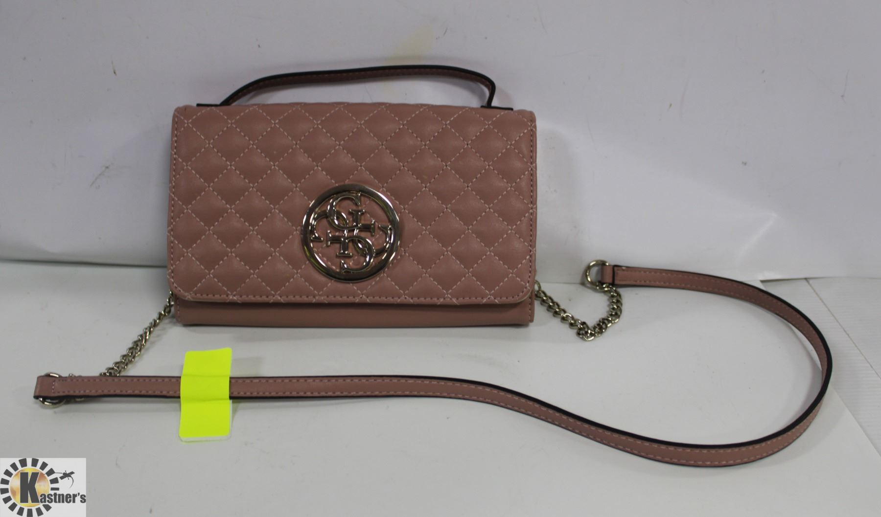 AUTHENTIC GUESS CLUTCH/PURSE WITH CHAIN, ROSE