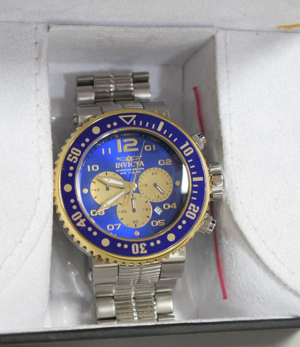 LARGE 55MM WITH CROWN CASE. 17MM THICK, STAINLESS STEEL BAND WITH EXTRA LINKS. COMES IN AN ORIGINAL BOX WITH TAGS & INSTRUCTIONS