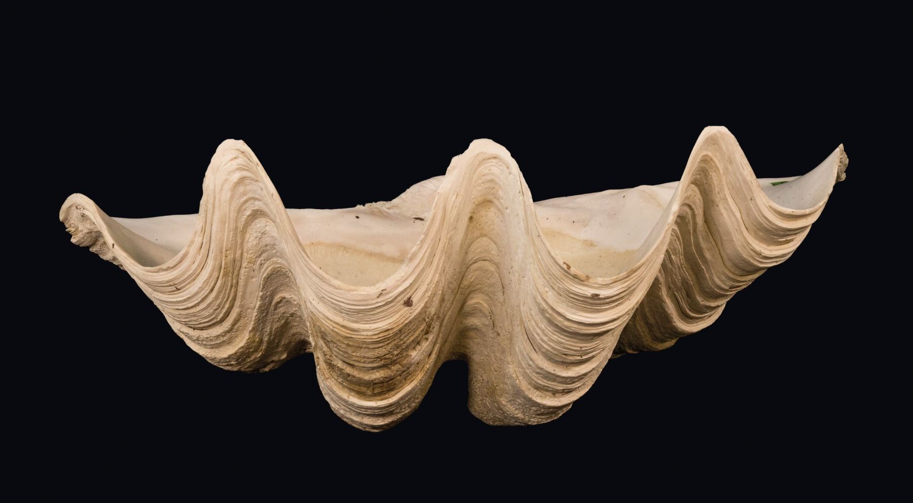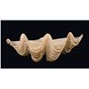 (1950s) Here is an authentic Tradicni, otherwise known as a Giant Clam Shell. These were always prized, yet in the 1950 and 60s, they were somewhat plentiful. Oceanic Arts imported these regularly, supplying them to the Polynesian decor field in applications such as bars, restaurants, theme parks and perhaps their most fondly remembered, the bathroom sink at the famed COCO PALMS Resort on Kauai, Hawaii. At some point in the 1970s, as they became more scarce, OA had some cast into molds for replication in fiberglass. Here is an ULTRA RARE, large sized, NATURAL shell. A must for any true Poly-Pop establishment. 9"x23"x14". VG+ with typical wear and chipping.