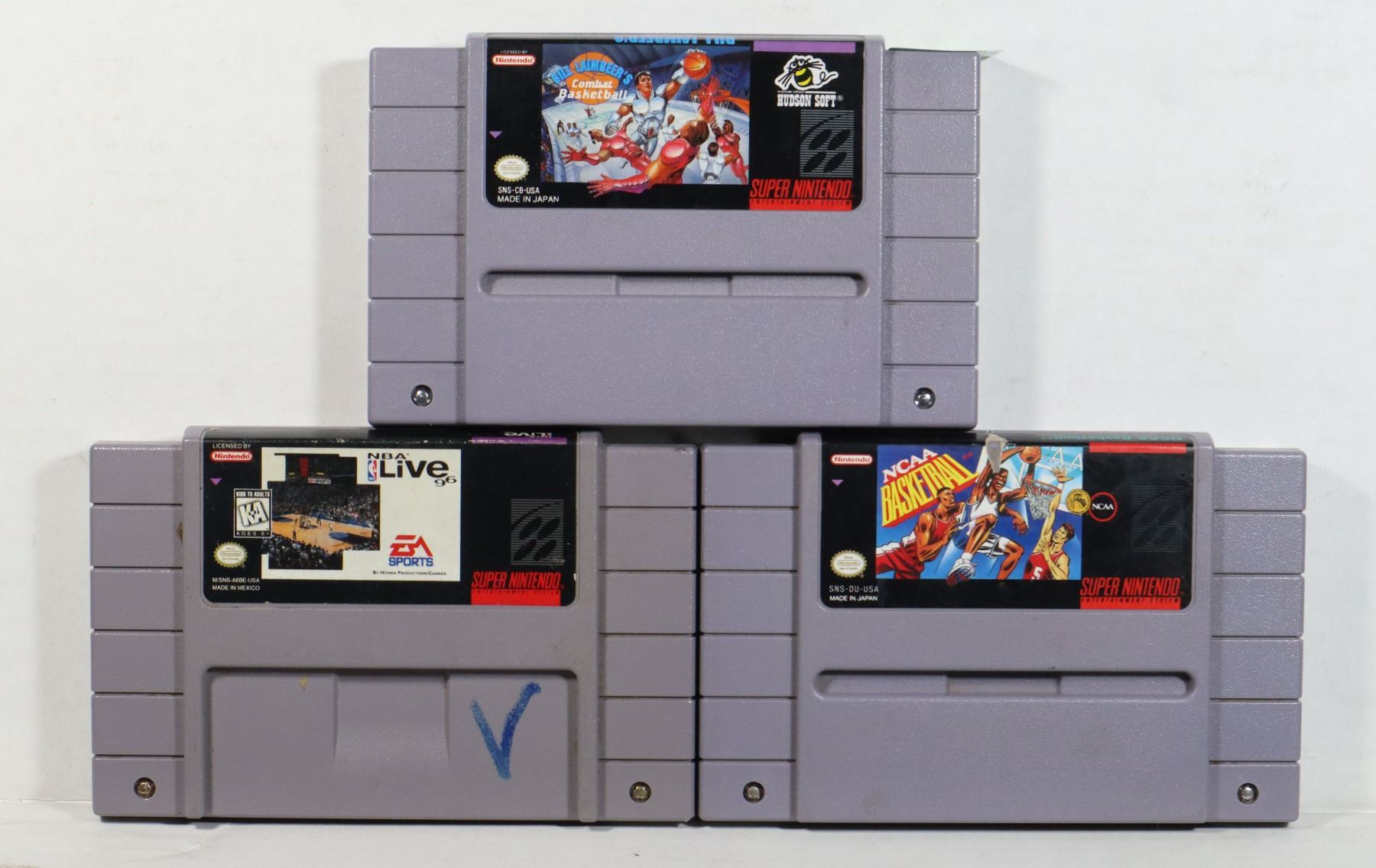 COMBAT BASKETBALL, NCAA BASKETBALL, NBA LIVE 96. SNES. TESTED, WORKING
