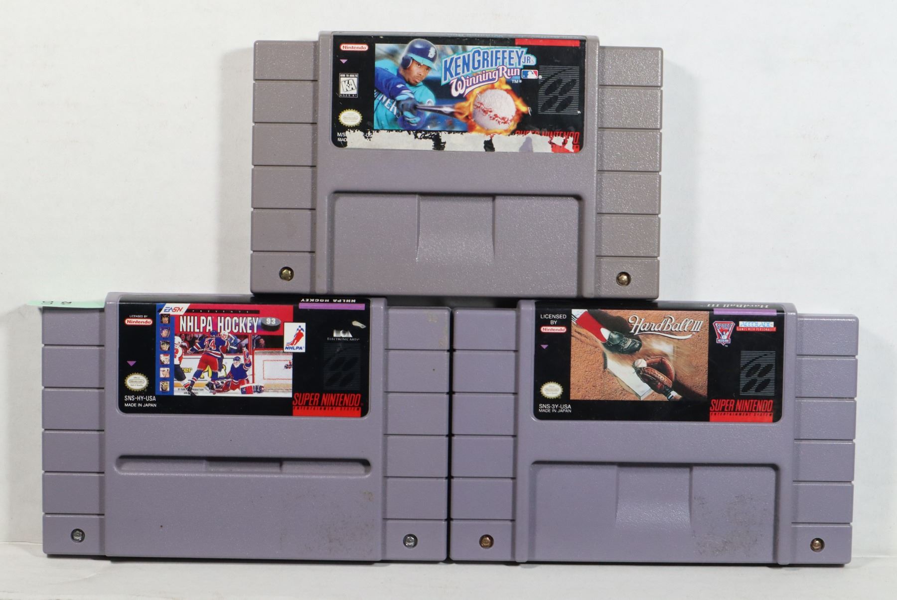 KEN GRIFFEY JR.'S WINNING RUN, AND HARDBALL III. SNES. TESTED, WORKING