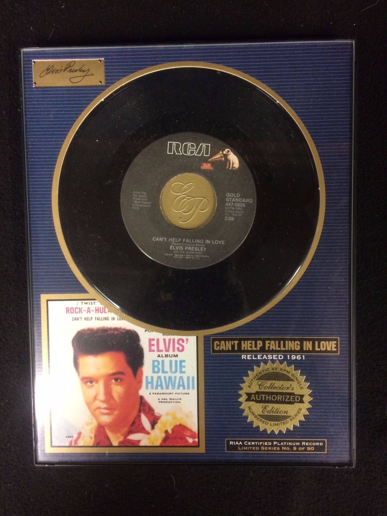 AUTHORIZED ELVIS PRESLEY ALBUM "BLUE HAWAII" SOUVENIR DISPLAY