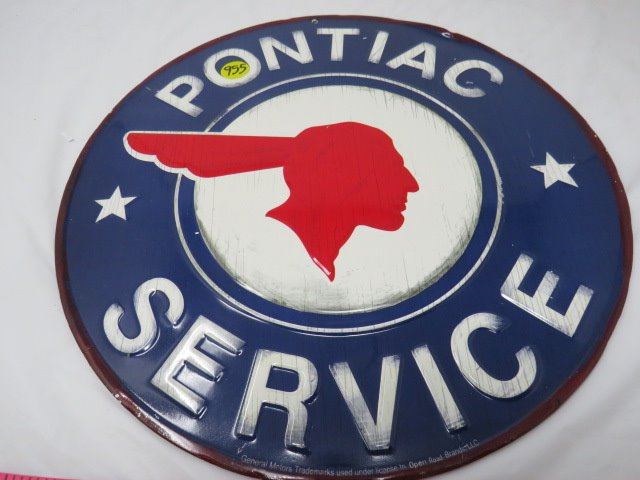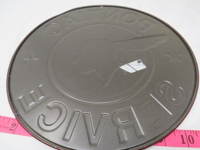 AUTO DEALER ADVERTISING PLATE (PONTIAC SERVICE) *METAL* (12" ROUND) (REPRO)