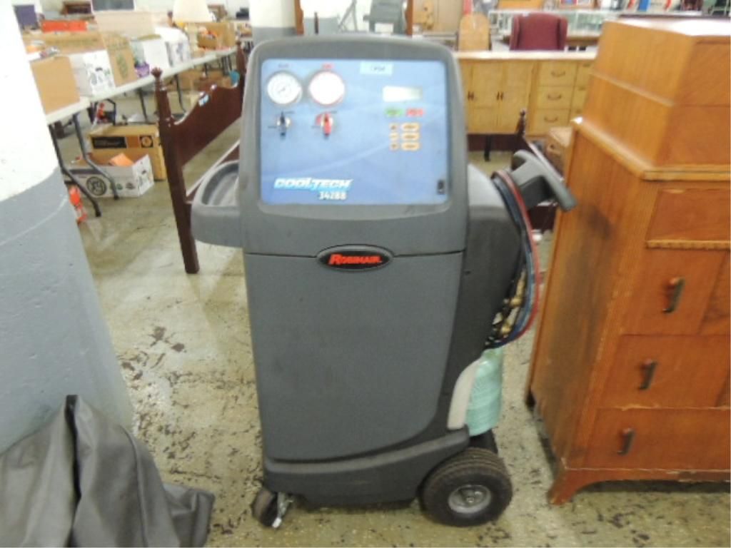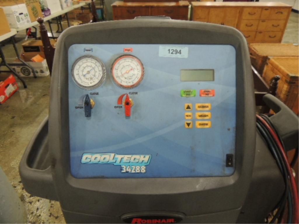 AUTO MAINTENANCE EQUIP. ROBINAIR COOL TECH 34288. AS SHOWN. VIEW PICTURE FOR DETAIL. The Cool-Tech 34288 combines simple operation with superior accuracy. It recovers, recycles, evacuates, and recharges R-134A quickly and accurately. Meets SAE J-2788 standards for accuracy: 95% refrigerant recovery and charging to +/- 1/2 oz.