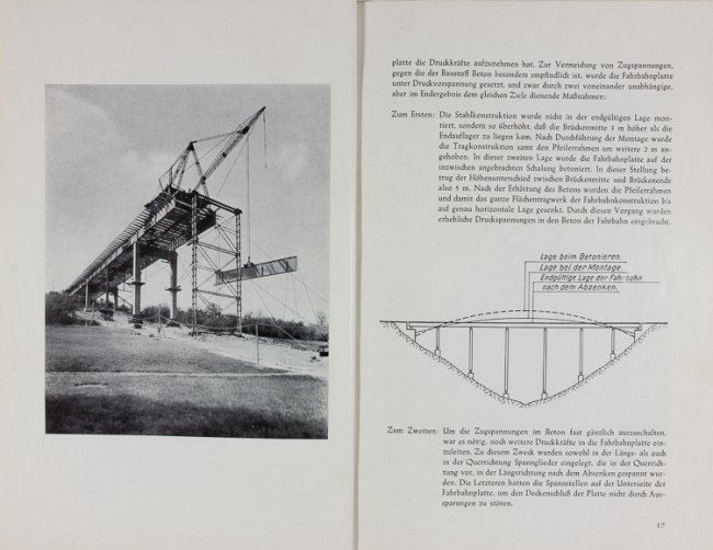 Printed pamphlet "Sulzbach-Viadukt 1934-1954", 32pp. 8vo., a booklet describing the construction of large Autobahn bridge and its post-war reconstruction, multiple illustrations, inscribed by one of the engineers at front. Very good.