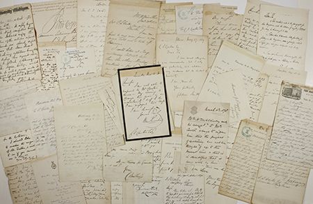 Large collection of mainly A.L.S.s of prominent politicians, clergyment, actors, authors, etc. from the mid to late-1800s, almost 60 pieces, many unidentified by us so a real "treasure hunt: for the determined collector. Includes: CHARLES SUMNER (2), REVERDY JOHNSON, HANNIBAL HAMLIN, GERRIT SMITH, JOHN J. FARNSWORTH, STEPHEN TYNG, JOSEPH JEFFERSON, CHARLOTTE CUSHMAN, GEORGE W. CURTIS, ELIHU BURRITT, GEORGE FRANCIS TRAIN, HENRY VINCENT, KARL BLIND, JUSTIN MCCARTHY, PETER COOPER, and others. Generally very good.