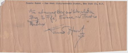 A group of 10 items from the estate of Pierre Monteux: FANNIE HURST (A.N.S.); DIONE LUCAS (A.L.S.); HENRY B. CABOT (A.L.S.); EDWARD HEATH (T.L.S.): HERBERT LEHMAN (T.L.S.); EDMUND S. MUSKIE (T.L.S.), ALFRED A. KNOPF (T.L.S.), and three letters of HERB CAEN. Overall very good condition.