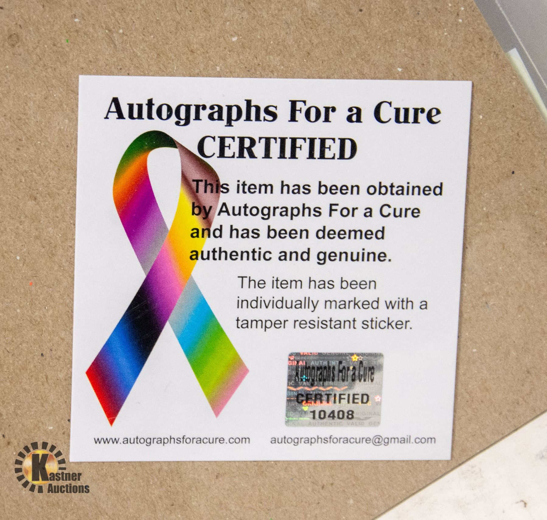 CERTIFIED BY AUTOGRAPHS FOR A CURE **ALL ITEMS MUST BE REMOVED BY 5PM SATURDAY, MAY 18THTH 2024. ALL REMAINING ITEMS WILL BE SUBJECT TO A $6.00 PER DAY STORAGE CHARGE. ANY ITEMS REMAINING AFTER MONDAY, JUNE 3RD 2024 WILL BE CONSIDERED FORFEITED. NO REFUNDS WILL BE ISSUED FOR FORFEITED ITEMS. TO SCHEDULE A PICK UP APPOINTMENT CLICK HERE
